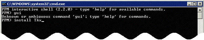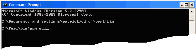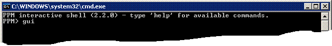 If you receive an error message, then simply start ppm by typing ppm at the DOS-prompt. One could still try to start the GUI by typing GUI at the PPM prompt